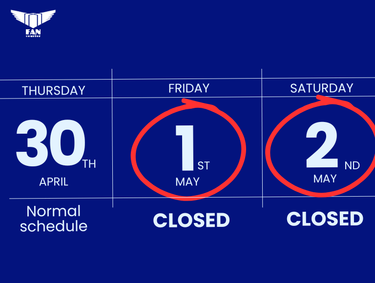 On Friday, May 1st, and Saturday, May 2st, we won’t be making deliveries or working with the public.