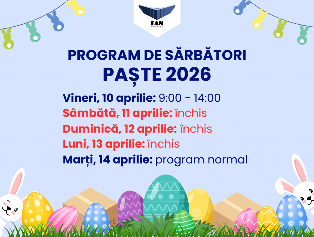 Cu ocazia sărbătorilor de Paște, activitatea FAN Courier se va desfășura după un program special.